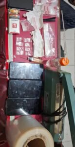 Saat dilakukan penggerebekan dan penggeledahan di lokasi yang disaksikan oleh perangkat nagari, petugas menemukan barang bukti yang cukup mencolok di atas meja. Petugas menyita satu kotak rokok merek Sampoerna yang berisi satu paket sedang dan delapan paket kecil plastik klip bening berisi butiran kristal diduga sabu.