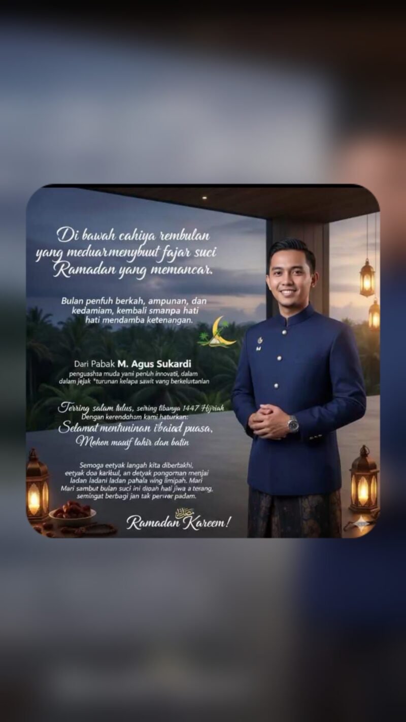 PADANG PARIAMAN, SUMBAR TIMES OKE – Di balik riuhnya deru mesin industri dan dinamika perdagangan turunan kelapa sawit yang tak pernah tidur, terselip sebuah refleksi mendalam menyambut datangnya bulan suci Ramadan 1447 H. Bagi M. Agus Sukardi, seorang pengusaha muda di sektor trading turunan kelapa sawit, Ramadan bukan sekadar ritual menahan lapar, melainkan proses “penyulingan” jiwa agar kembali murni.