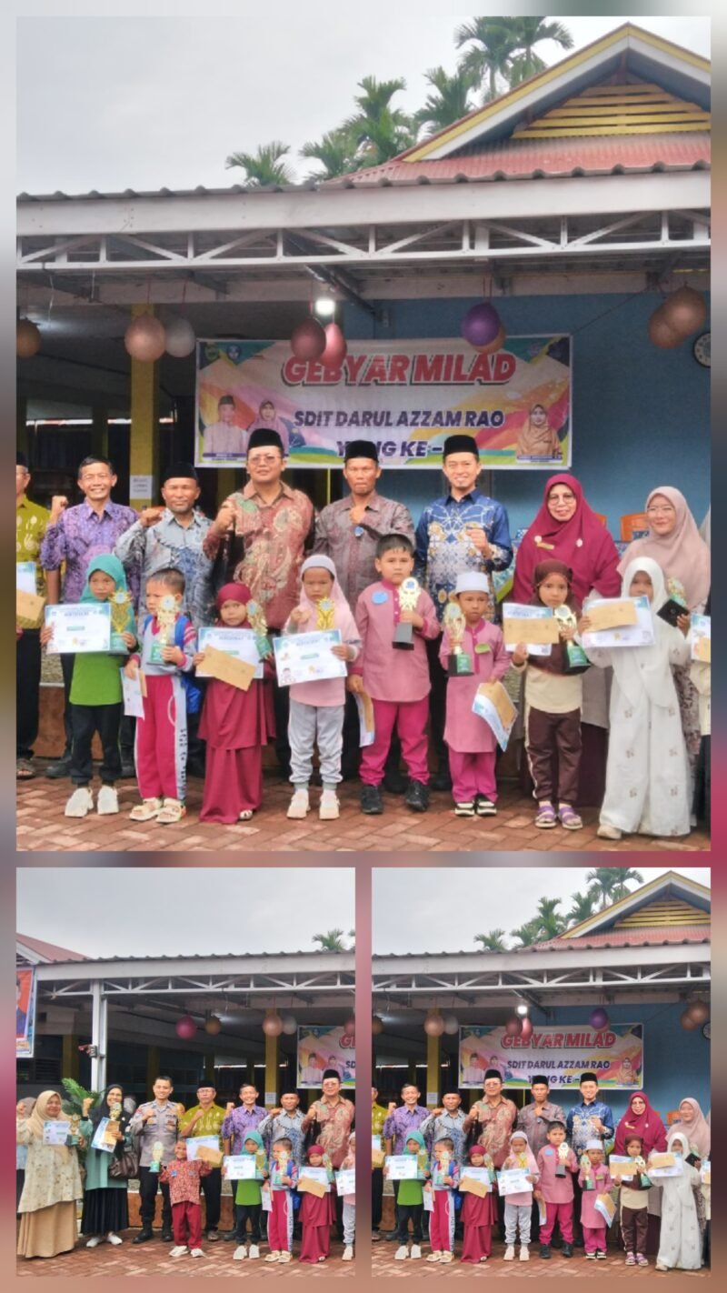 Kepala SDIT Darul Azzam Rao, Ustadzah Anggi Anggraini, menyatakan rasa harunya atas sinergi yang terjalin. “Terima kasih kepada perwakilan Camat Rao Bapak Masril, tokoh masyarakat Bapak Agustimaizol, M.Muluk, serta jajaran Polsek dan KUA Rao yang telah meluangkan waktu hadir di tengah-tengah kami,” tuturnya.